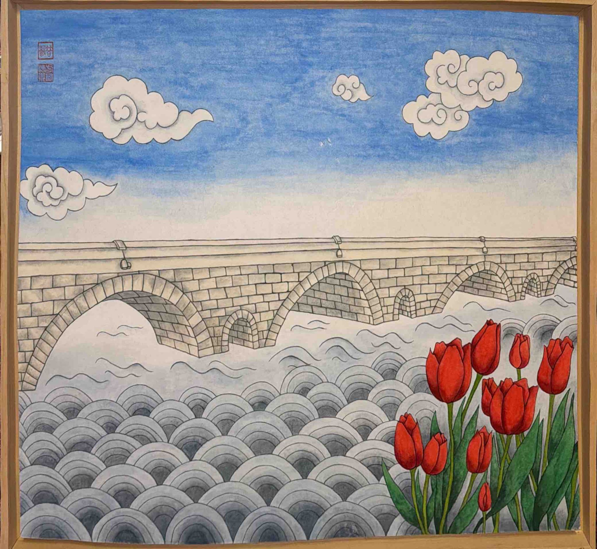 ”Bu, Adana’nın tarihi taş köprüsünün Kore halk tarzında bir resmi. Kore ile Türkiye arasındaki sevgi, saygı ve uzun süreli dostluğu ifade etmek istedim.